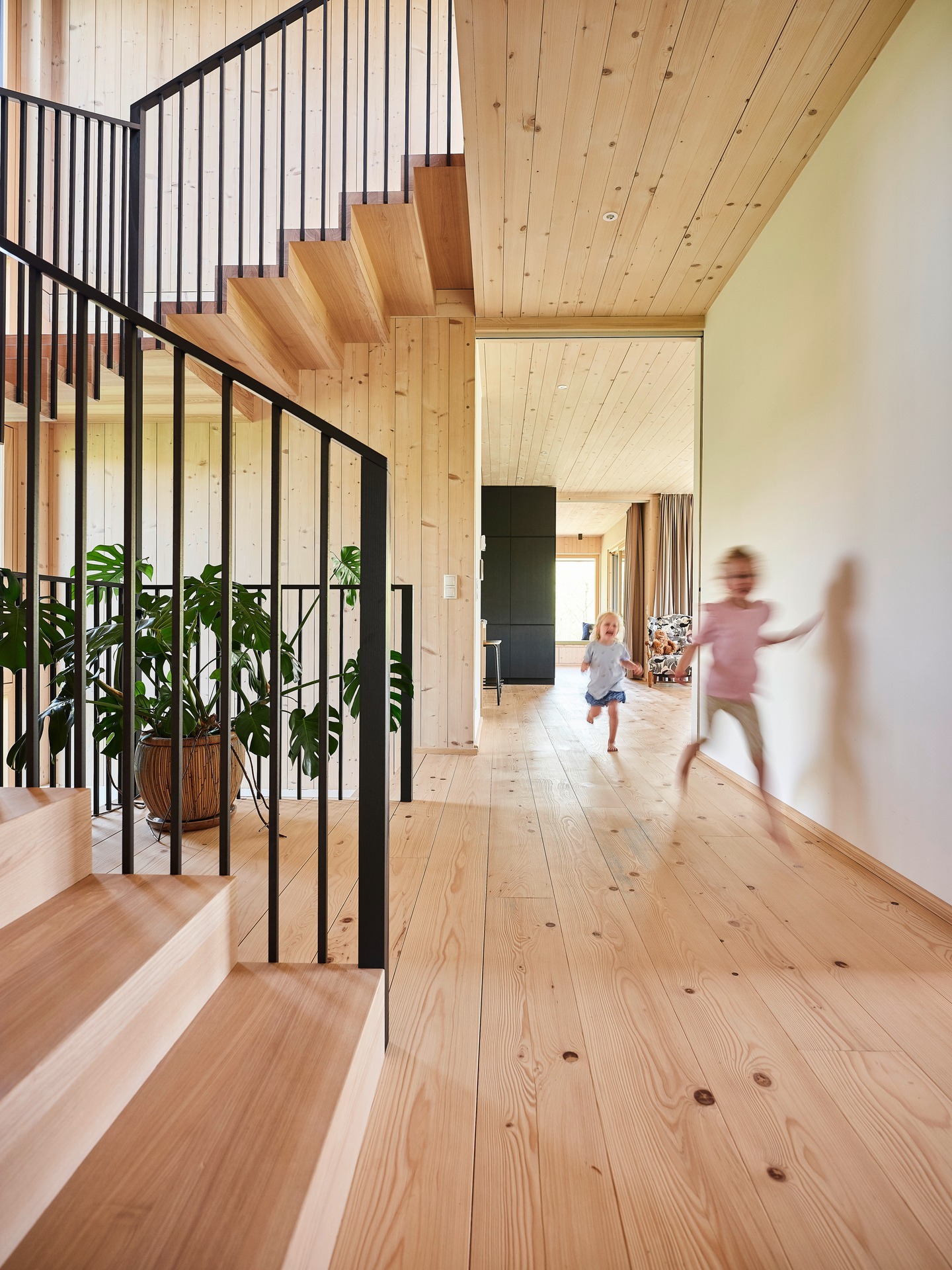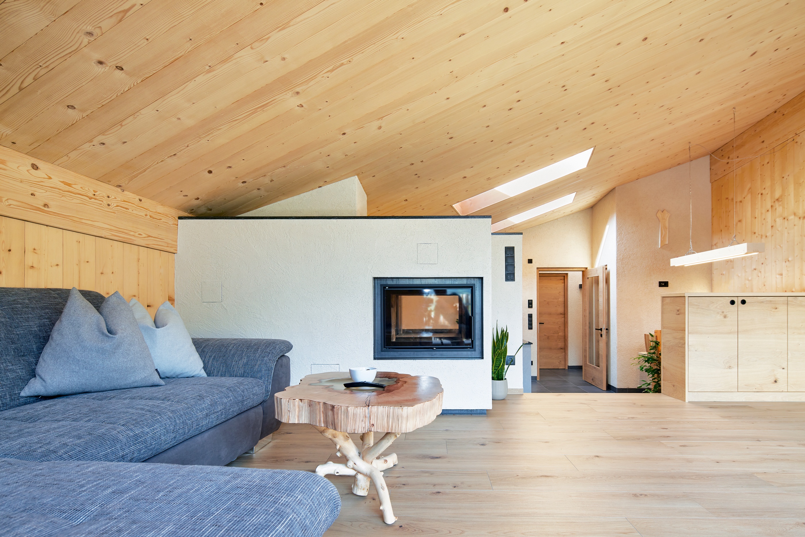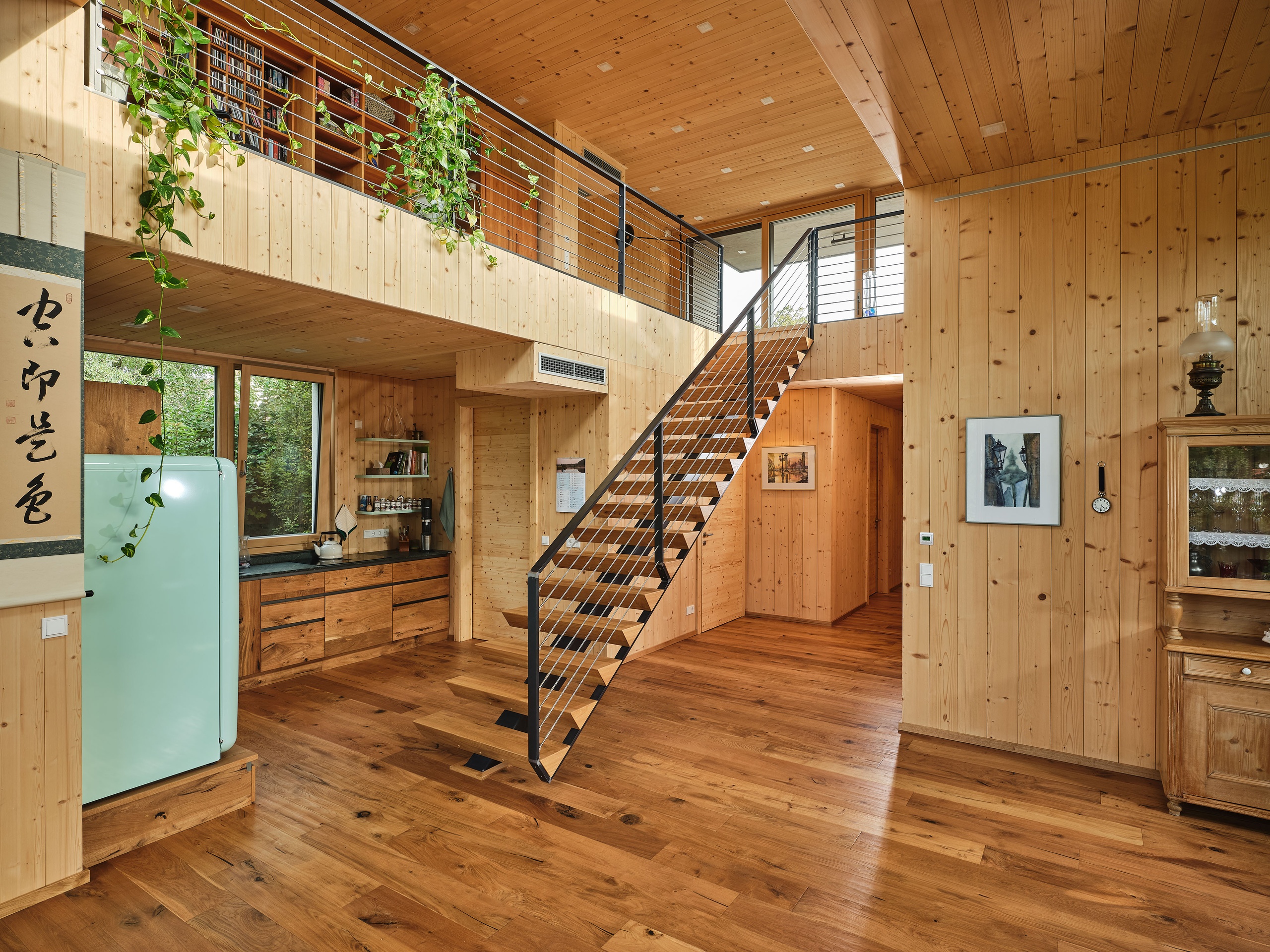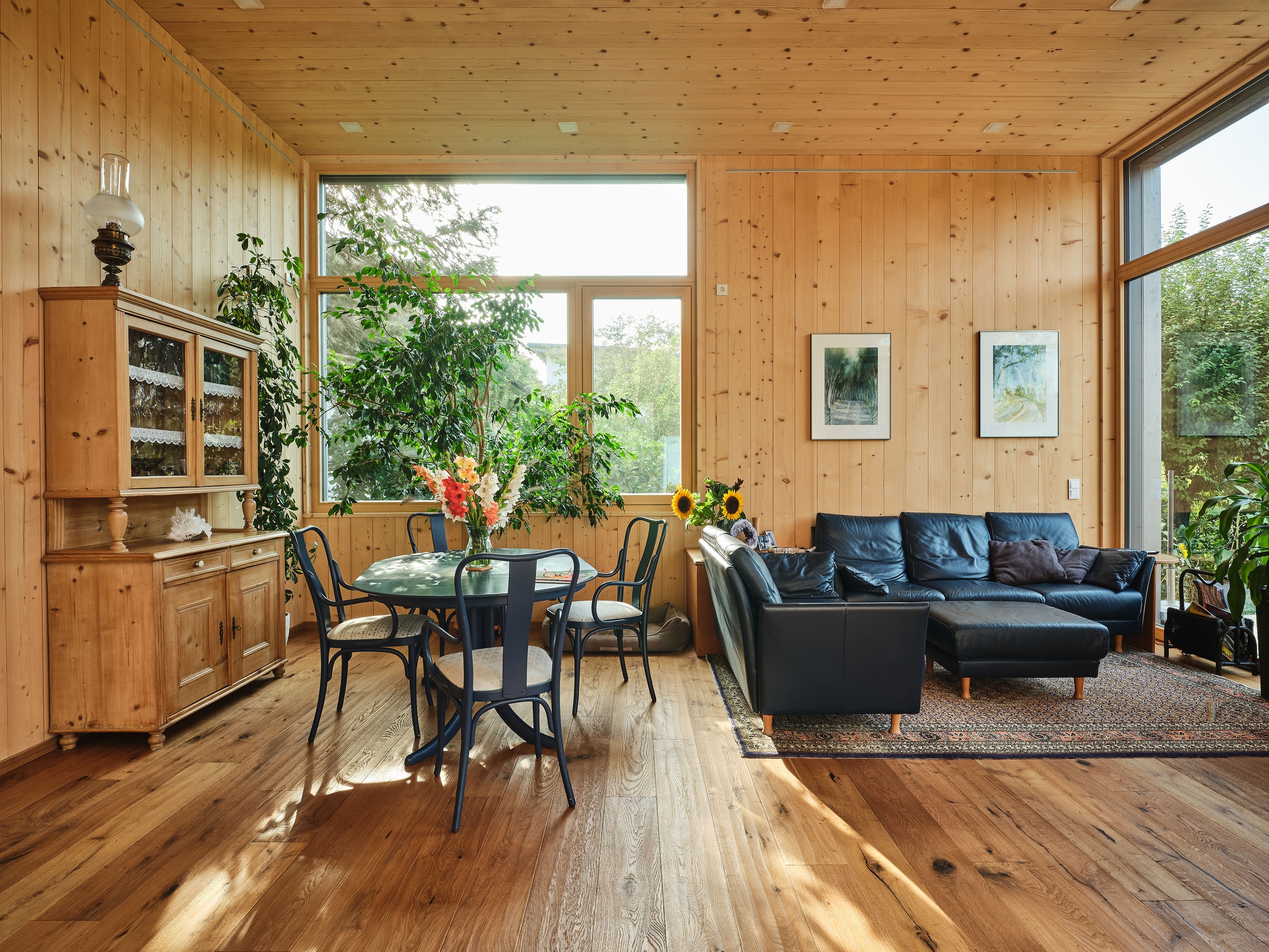 Die Stärken des Holzes nutzen: Natürliches Raumklima und behagliches Wohnen mit unbehandelten heimischen Holzarten und natürlichen Materialien.