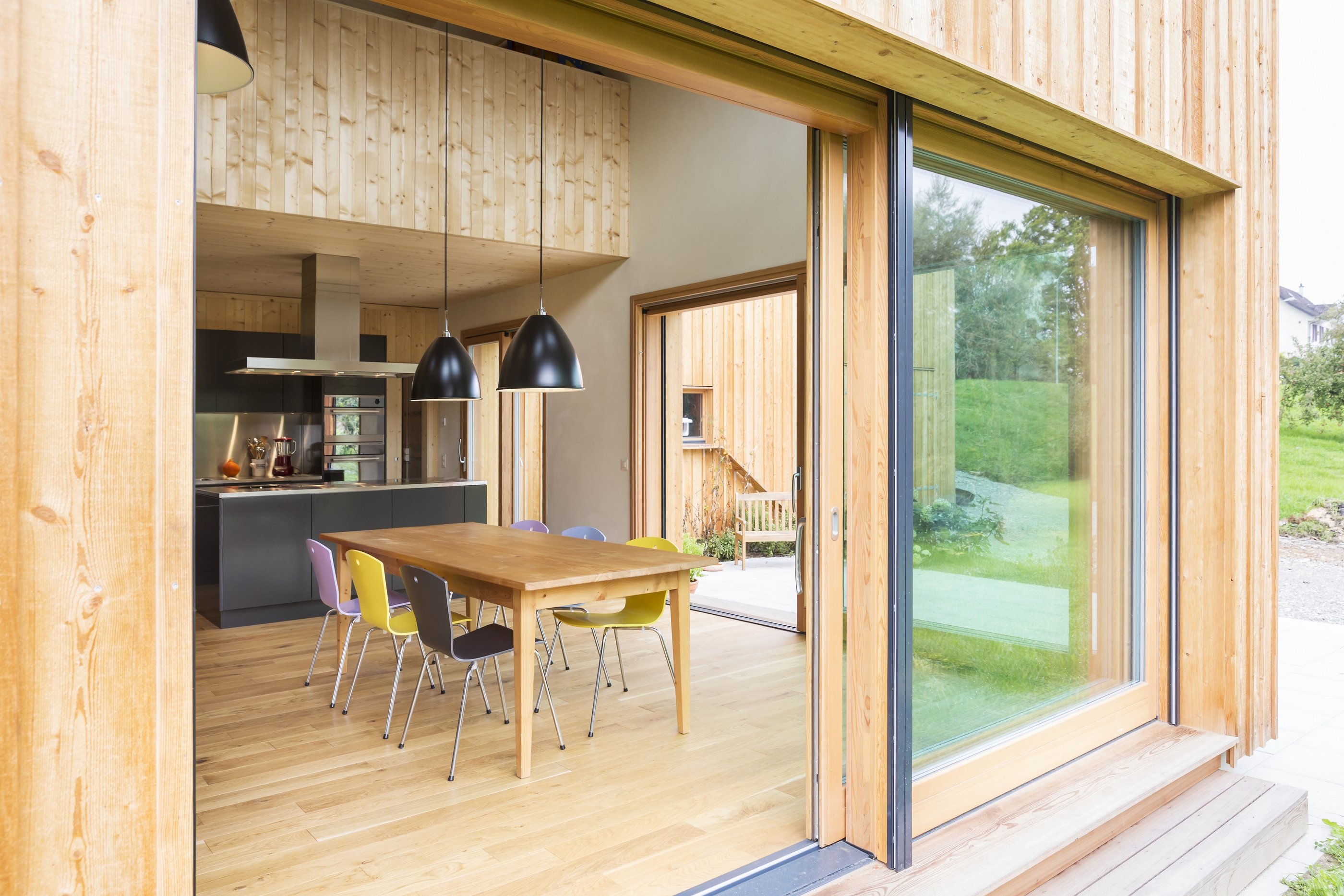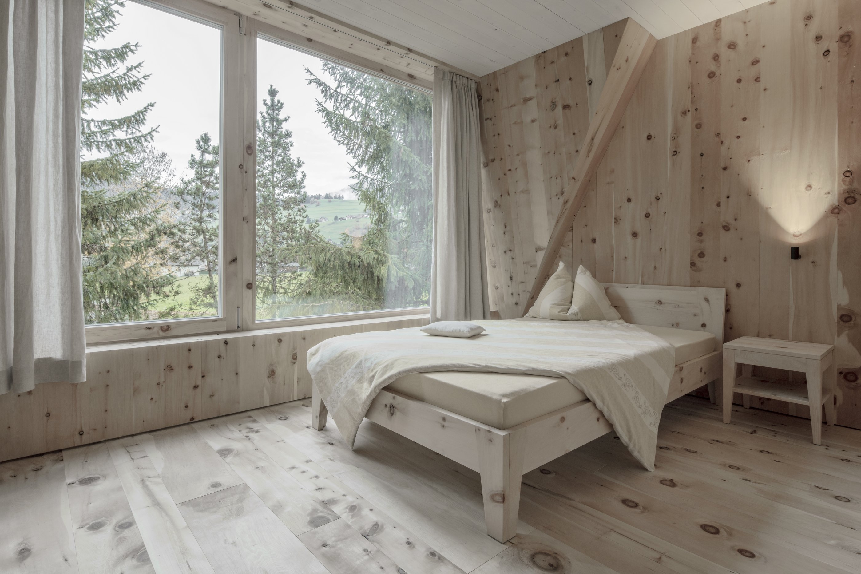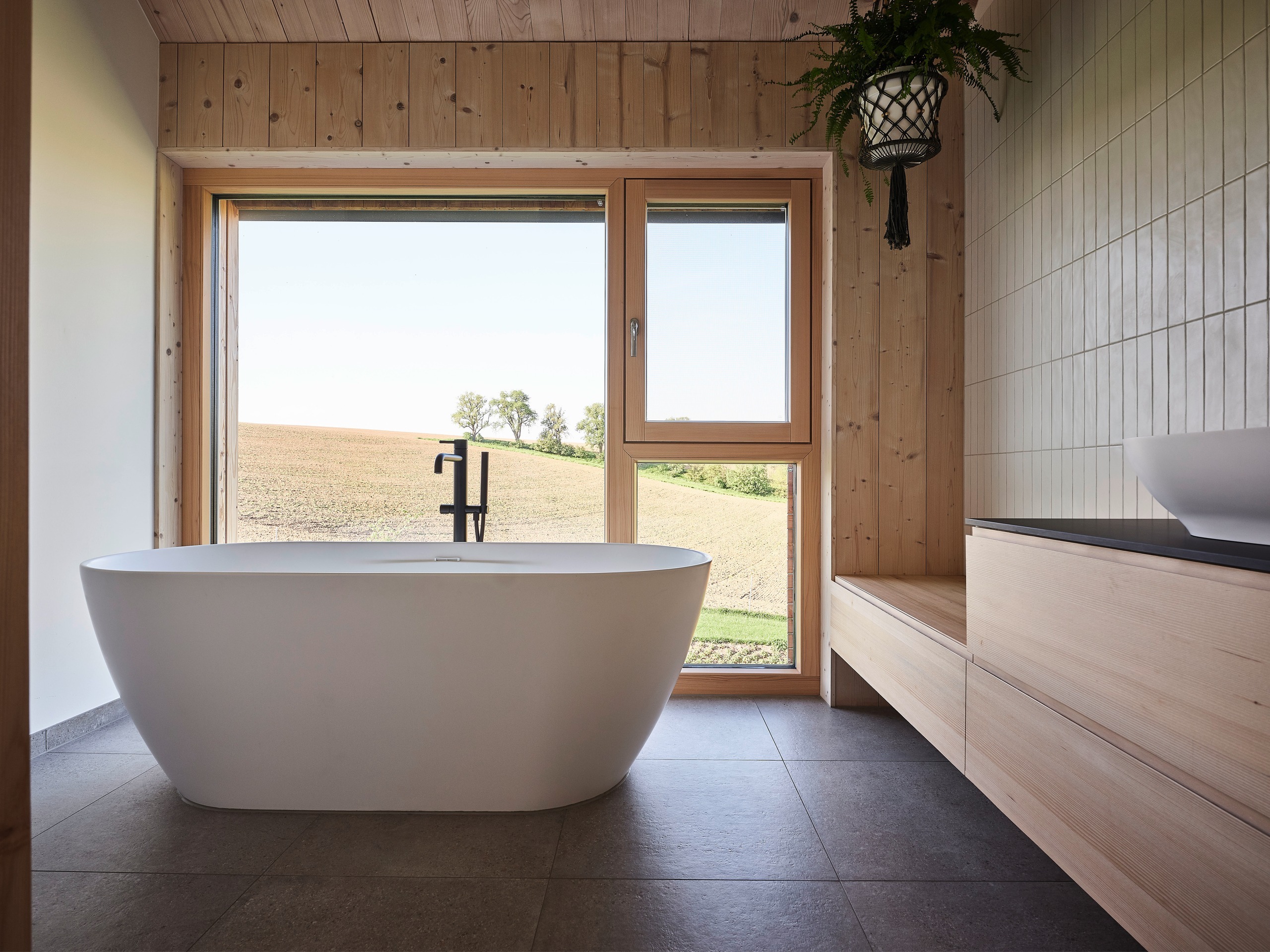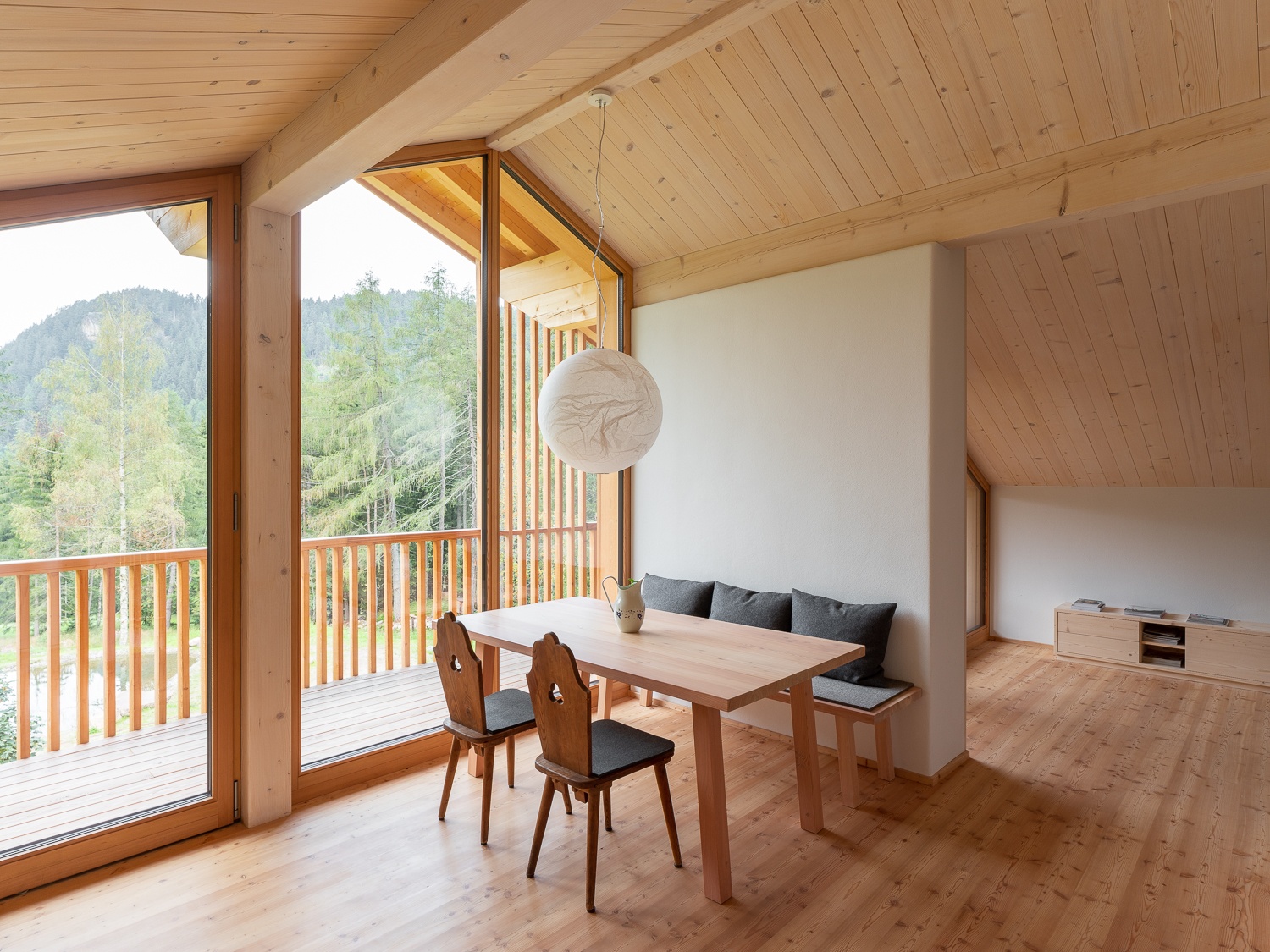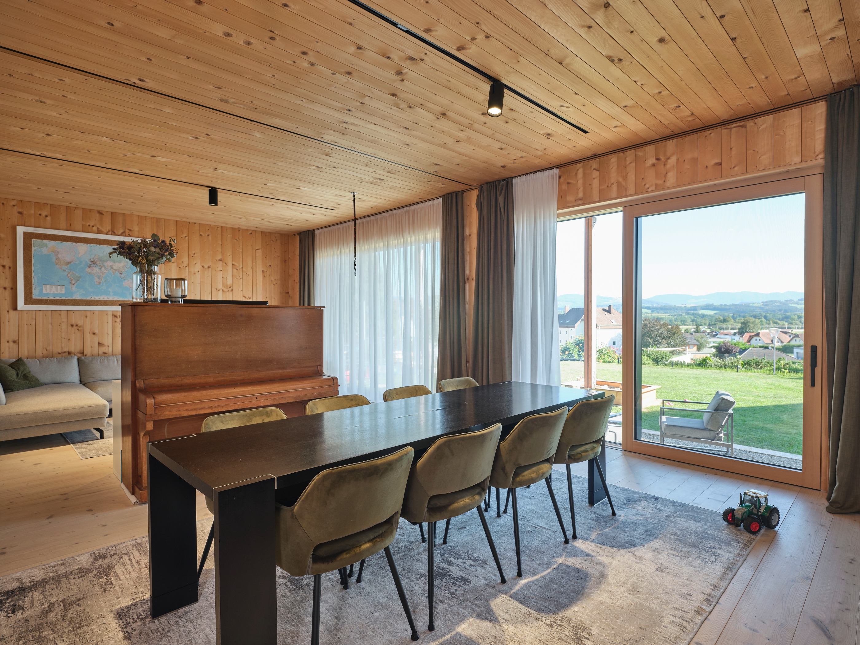 Die Stärken des Holzes nutzen: Natürliches Raumklima und behagliches Wohnen mit unbehandelten heimischen Holzarten und natürlichen Materialien.