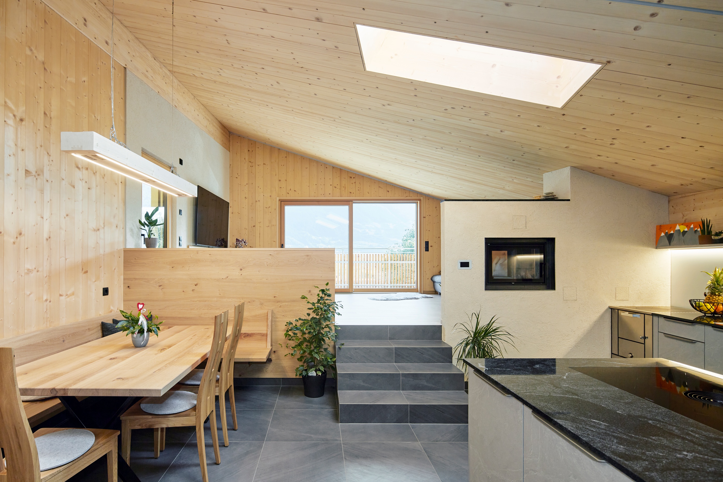 Der feine Duft des Holzes ist allgegenwärtig und wirkt sich positiv auf unseren Familienalltag aus. Seit wir hier leben, fühlen sich die Kinder rundum geborgen, wir alle schlafen besser und wachen deutlich erholter wieder auf.